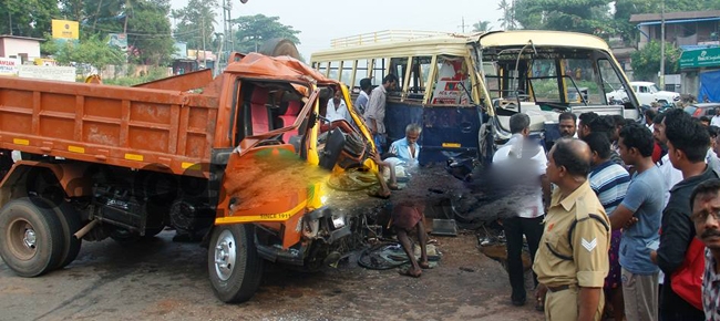 കൊല്ലത്ത് ബസും ടിപ്പറും കൂട്ടിയിടിച്ചു