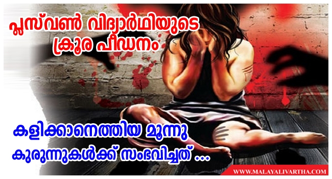 വീട്ടില് കളിച്ചുകൊണ്ടിരുന്ന ഒന്നിലും രണ്ടിലും മൂന്നിലും പഠിക്കുന്ന മൂന്നു ബാലികമാരെ പ്ലസ്വണ് വിദ്യാര്ഥി പീഡിപ്പിച്ചു