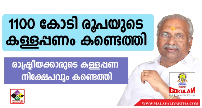 ഗോകുലം ഗ്രൂപ്പിലെ ആദായനികുതി റെയ്ഡ്; കണ്ടെത്തിയത് 1100 കോടി രൂപയുടെ കള്ളപ്പണം