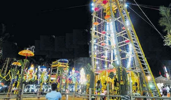 തുടര്ന്ന് ആചാരപരമായി വിളക്കു കത്തിച്ചു പറണിനു മുകളിലെത്തിച്ചു. ഇതിനു ശേഷം പീഠവും പിന്നെ ചെണ്ടമേളങ്ങളുടെയും വായ്ക്കുരവയുടെയും അകമ്പടിയോടെ തങ്കത്തിരുമുടിയും പറണിനു മുകളില് എത്തിച്ചു.