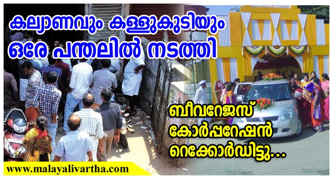 കള്ളും കല്യാണവും ഒരേ പന്തലില്; കല്യാണ പന്തലില് മദ്യം വിറ്റ് ബിവറേജസ് കോര്പ്പറേഷന്