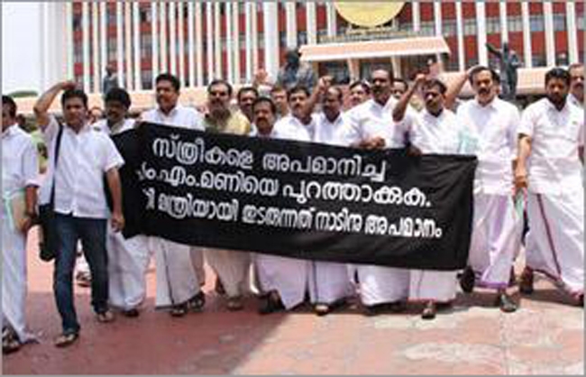 സ്ത്രീത്വത്തെ അപമാനിക്കുന്ന തരത്തില് പരാമര്ശം നടത്തിയ മന്ത്രി എം.എം.മണിയുടെ രാജി ആവശ്യപ്പെട്ട് പ്രതിപക്ഷ ബഹളം ഉയര്ത്തിയതോടെ തുടര്ച്ചയായ രണ്ടാം ദിവസവും നിയമസഭ സ്തംഭിച്ചു. സഭാനടപടികള് തുടരാനാവാതെ വന്നതോടെ സ്പീക്കര് ഇന്നത്തേക്ക് സഭ പിരിയുന്നതായി പ്രഖ്യാപിക്കുകയും ചെയ്തു. മണിയുടെ രാജിയില് കുറഞ്ഞതൊന്നും അംഗീകരിക്കില്ലെന്നാണ് പ്രതിപക്ഷത്തിന്റെ നിലപാട്. സ്ത്രീകളെ അപമാനിക്കുന്ന തരത്തില് പരാമര്ശം നടത്തിയ മന്ത്രിയെ സംരക്ഷിക്കുന്ന സര്ക്കാര് നയത്തെ അംഗീകരിക്കില്ലെന്ന് പ്രതിപക്ഷ നേതാവ് രമേശ് ചെന്നിത്തല വ്യക്തമാക്കി.