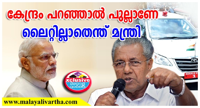 കേരളം ഉടക്കാന് തന്നെ ഉറച്ച്: ചുവന്ന ബീക്കണ് ലൈറ്റില്ലാതെ മന്ത്രിമാര്ക്ക് ജീവിക്കാന് വയ്യെന്ന് കേരളം