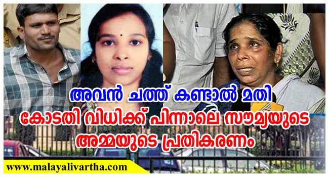 സൗമ്യ കേസ്; കോടതിവിധിയില് മനം നൊന്ത് സൗമ്യയുടെ മാതാവിന്റെ പ്രതികരണം