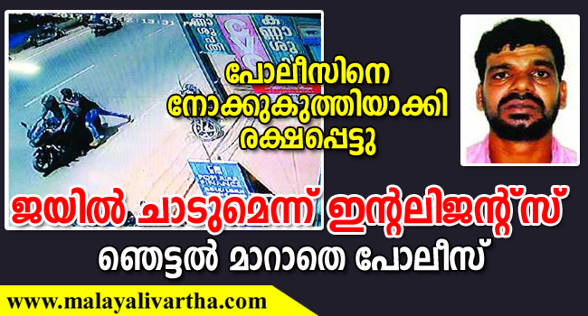 മറ്റൊരു കുറ്റവാളി മാമ്പഴക്കര സ്വദേശി ബൈജുവിന്റേതാണ് ഈ ബൈക്ക് എന്നാണ് കരുതുന്നത്. ബൈക്ക് തിരുവനന്തപുരം ഭാഗത്തേക്ക് ഓടിച്ചു പോകുകയും ചെയ്തു. കറുത്ത ടീ ഷര്ട്ടും പാന്റ്സുമാണ് പ്രതിയുടെ വേഷം. ഏഴുമാസം മുമ്പാണ് പ്രതി ജയിലിലായത്. പിടിച്ച പോലീസുകാര്ക്ക് നേരെ വധഭീഷണിയും മുഴക്കിയിരുന്നു. പ്രതി രക്ഷപ്പെടാന് സാധ്യതയുണ്ടെന്ന് രഹസ്യാന്വേഷണ വിഭാഗം മുന്നറിയിപ്പ് നല്കിയിട്ടും കരുതല് നടപടിയെടുക്കാതിരുന്ന പോലീസിന്റെ വീഴ്ച അന്വേഷിക്കും. പ്രതിക്കായി വ്യാപകമായ തെരച്ചില് തുടങ്ങിയിട്ടുണ്ട്.