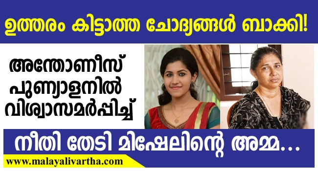എന്റെ പൊന്നുമോള്ക്ക് നീതി കിട്ടണം; ഹൃദയം തകര്ന്നു മിഷേലിന്റെ അമ്മ