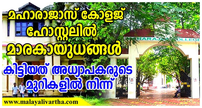 മഹാരാജാസ് കോളജ് ഹോസ്റ്റലില് മാരകായുധങ്ങള്; കിട്ടിയത് കുട്ടികള്ക്ക് താല്ക്കാലികമായി അനുവദിച്ച അധ്യാപകരുടെ മുറികളില് നിന്നും