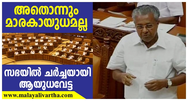 അതാണോ മാരകായുധം മറുപടി പറഞ്ഞ് മുഖ്യന്. മഹാരാജാസില് നിന്നും ആയുധങ്ങള് പിടിച്ചെടുത്ത സംഭവത്തില് നിയമസഭയിലും ചര്ച്ച. കലാലയങ്ങളെ ആയുധകേന്ദ്രങ്ങളാക്കുന്നത് ചര്ച്ച ചെയ്യണമെന്ന് ആവശ്യപ്പെട്ട് പി.ടി തോമസ് എംഎല്എയാണ് അടിയന്തര പ്രമേയത്തിന് അനുമതി തേടിയത്. എന്നാല് സഭയില് ചര്ച്ച ചെയ്യേണ്ട പ്രാധാന്യം വിഷയത്തിനില്ലെന്ന് സ്പീക്കര് വ്യക്തമാക്കി. അതേസമയം മഹാരാജാസ് കോളെജില് നിന്നും വടിവാളോ, ബോംബോ കണ്ടെത്തിയിട്ടില്ലെന്ന് മുഖ്യമന്ത്രി വ്യക്തമാക്കി.