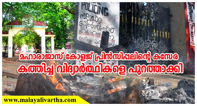 മഹാരാജാസ് കോളേജില് പ്രിന്സിപ്പലിന്റെ കസേര കത്തിച്ച സംഭവത്തില് ആറു വിദ്യാര്ഥികളെ കോളേജില് നിന്ന് പുറത്താക്കി. യൂണിയന് ചെയര്മാന് അശ്വിന്, എസ്എഫ്ഐ നേതാക്കളായ ഹരികൃഷ്ണന്, അമീര് എന്നിവര് ഉള്പ്പെടെ ആറു പേരെയാണ് പുറത്താക്കിയത്.കഴിഞ്ഞ ദിവസം പ്രിന്സിപ്പലിനെ ഭീഷണിപ്പെടുത്തിയ വിദ്യാര്ത്ഥികളും ഇക്കൂട്ടത്തിലുണ്ട്. സംഭവം അന്വേഷിച്ച മൂന്നംഗ കമ്മിഷന് ഇവര് കുറ്റക്കാരാണെന്നു റിപ്പോര്ട്ട് നല്കിയിരുന്നു ഇതേ തുടര്ന്നാണ് നടപടി.