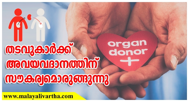മുഖ്യമന്ത്രി പിണറായി വിജയന്റെ അധ്യക്ഷതയില് ചേര്ന്ന യോഗത്തിലാണ് സംസ്ഥാനത്തെ ജയിലുകളിലുള്ള തടവുകാര്ക്ക് അവയവ ദാനത്തിനു സൗകര്യമൊരുക്കാന് തീരുമാനമായത്. തടവുകാരുടെ കുടുംബാംഗങ്ങള്ക്ക് അവയവം ദാനം ചെയ്യാനാണ് സൗകര്യമൊരുക്കുക. ഇതിനായി ജയില് ചട്ടത്തില് ആവശ്യമായ ഭേദഗതികള് വരുത്തും. അവയവ ദാനം നടത്തുന്ന തടവുകാര്ക്ക് ആവശ്യമായ ചികിത്സയും മരുന്നും സര്ക്കാരിന്റെ ഉത്തരവാദിത്വമായി കണ്ട് നല്കാന് ജയില് അധികൃതര് ശ്രദ്ധിക്കണമെന്നും മുഖ്യമന്ത്രി ആവശ്യപ്പെട്ടു.