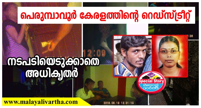 പെരുമ്പാവൂരിന്റെ അഞ്ചു കിലോമീറ്റര് ചുറ്റളവില് ചെറുതും വലുതുമായ അമ്പതിലധികം വേശ്യാലയങ്ങള് പ്രവര്ത്തിക്കുന്നു. ചുരുക്കത്തില് പെരുമ്പാവൂരുകാര്ക്ക് അവരുടെ നാട് അന്യമായി. പകരം വ്യവസായികളും , ഗുണ്ടകളും, മാഫിയയും പ്രദേശം കീഴടക്കി. ആലപ്പുഴ , ഏറണാകുളം , ചാലക്കുടി , തൃശൂര് തുടങ്ങിയ പ്രദേശങ്ങളിലെ അന്യസംസ്ഥാന തൊഴിലാളികള് അവരുടെ ലൈംഗികാവശ്യങ്ങള്ക്കായി എത്തിച്ചേരുന്നത് പെരുമ്പാവൂര് ആണ്. അതിനായി ചുവന്ന തെരുവുകള് തന്നെ ഇവിടെ രൂപപ്പെട്ടു കഴിഞ്ഞു . സ്വദേശികളായ നിരവധി ചെറുപ്പക്കാര് സംഘടിച്ചു നടത്തിയ ചെറുത്തു നില്പ്പില് കുറെയൊക്കെ പ്രവര്ത്തനം അവസാനിപ്പിച്ചു. എന്നാല് സംഘടിക്കുന്നവരെ ചെറുക്കാന് ഇവിടത്തെ വ്യവസായികള് പണവും ഗുണ്ടായിസവും ഒഴുക്കി. പലരെയും കള്ളക്കേസുകളില് കുടുക്കി. പ്രദേശത്തെ ചില മാധ്യമ പ്രവര്ത്തകര് പോലും ഭയന്ന് വിഷയം തുറന്നെഴുതാറില്ല.