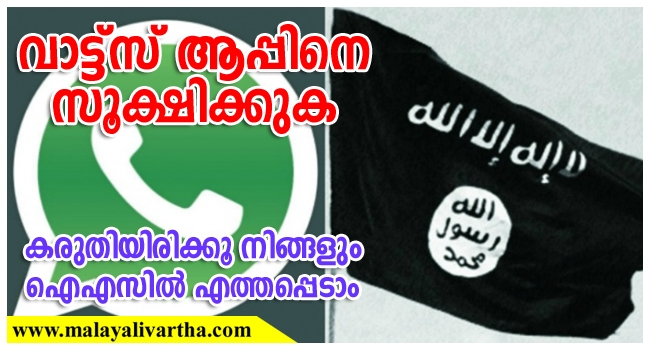 ഐഎസോ ഒരിക്കല് എന്തെന്നു ചോദിച്ച മലയാളിക്കെല്ലാം ഇന്നതെന്തെന്ന് നന്നായി അറിയാം. കാരണം നിരവധി മലയാളികള് അതില് എത്തപ്പെട്ടു. ഇപ്പോള് അറിയാത നമ്മളും അതിന്റെ ഭാഗമാകുകയാണ് വാട്ടസ് ആപ്പ് ഗ്രൂപ്പുകള് വഴിയാണ് കളികള്. ഫേസ് ബുക്കില് നിങ്ങള്ക്ക് പരിചയമില്ലാത്ത പേജുകള് ലൈക്ക് ചെയ്യാതിരക്കുക. മെസേജുകള് വന്നാല് അവഗണിക്കുക. വാട്ട്സ് ആപ്പിലും ജാഗ്രത പാലിക്കുക. രാജ്യാന്തര ഭീകരസംഘടനയായ ഇസ്ലാമിക് സ്റ്റേറ്റിനായി വാട്സാപ്പും, ഫെയ്സ്ബുക്കും അടക്കമുളള സമൂഹമാധ്യമങ്ങളില് മലയാളത്തില് പ്രചാരണം നടത്തുന്നത് കാസര്കോട് നിന്നും കാണാതായവരില് ഉള്പ്പെട്ട യുവാവാണെന്ന് ദേശീയ അന്വേഷണ ഏജന്സി. കാസര്കോട് തൃക്കരിപ്പൂര് സ്വദേശിയായ അബ്ദുള് റാഷിദാണ് മെസേജ് ടു കേരള എന്ന വാട്സാപ്പ് ഗ്രൂപ്പ് നിയന്ത്രിക്കുന്നതെന്നും പ്രചാരണം നടത്തുന്നതെന്നും എന്ഐഎ വ്യക്തമാക്കുന്നു.ഈ ഗ്രൂപ്പിലേക്ക് സമ്മതമില്ലാതെ അംഗങ്ങളെ ചേര്ക്കുന്നുവെന്ന പരാതിയും എന്ഐഎക്ക് ലഭിച്ചിരുന്നു. തുടര്ന്ന് നടത്തിയ അന്വേഷണത്തിലാണ് കാസര്കോട് നിന്നും നാടുവിട്ടവരുടെ സംഘത്തിലെ പ്രധാനിയായ അബ്ദുള് റാഷിദിലേക്ക് എന്ഐഎ എത്തുന്നത്. ഇസ്ലാമിക് സ്റ്റേറ്റിലേക്ക് പുതിയ അംഗങ്ങളെ റിക്രൂട്ട് ചെയ്യുക എന്നതാകാം ഇത്തരം ഗ്രൂപ്പുകളുടെ ലക്ഷ്യമെന്ന് കരുതുന്നതായും എന്ഐഎ കേന്ദ്രങ്ങള് വിശദമാക്കുന്നു.