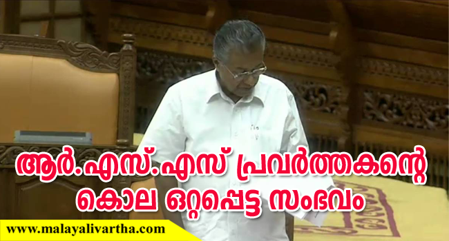 രാഷ്ട്രീയ കൊലപാതകങ്ങളെ ആരും ന്യായീകരിക്കുന്നില്ലെന്നും എന്നാല് കണ്ണൂരിലെ ആര്.എസ്.എസ് പ്രവര്ത്തകന്റെ കൊല ഒറ്റപ്പെട്ട സംഭവം ആണെന്നും മുഖ്യമന്ത്രി പിണറായി വിജയന് പറഞ്ഞു. ആര്.എസ്.എസ് പ്രവര്ത്തകന് ബിജുവിനെ ആക്രമിച്ച് കൊലപ്പെടുത്തിയ സംഭവത്തിന് പിന്നില് സി.പി.എം പ്രവര്ത്തകരാണെന്ന് പൊലീസിന് മൊഴി ലഭിച്ചിട്ടുണ്ടെന്നും മുഖ്യമന്ത്രി പറഞ്ഞു. കണ്ണൂരിലെ കൊലപാതകം ചര്ച്ച ചെയ്യണമെന്ന് ആവശ്യപ്പെട്ട് പ്രതിപക്ഷം കൊണ്ടുവന്ന അടിയന്തരപ്രമേയ നോട്ടീസിന് മറുപടി പറയുകയായിരുന്നു അദ്ദേഹം.