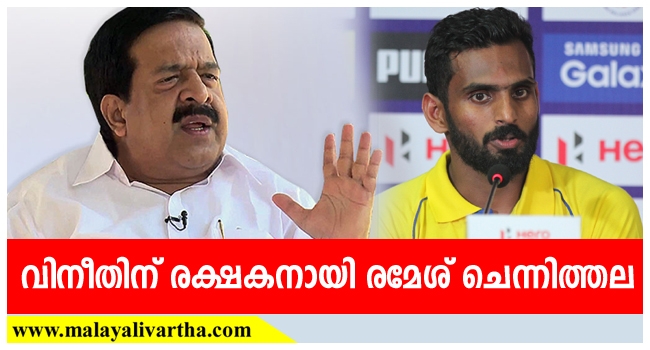 ജോലിയില് നിന്നും മാറ്റാനുള്ള നിലപാട് അദ്ദേഹത്തിന്റെ പ്രതിഭയെ തളര്ത്താനും കായിക ലോകത്ത് നിന്ന് മാറ്റി നിര്ത്താനും മാത്രമെ സഹായിക്കു. വിനീതിനെ പോലുള്ള കായിക പ്രതിഭകള്ക്ക് അകമഴിഞ്ഞ പ്രോത്സാഹനവും പിന്തുണയും നല്കേണ്ടതാണ്. അദ്ദേഹം പലതവണ നല്കിയ ലീവ് അപേക്ഷ പരിഗണിച്ചില്ലന്നാണ് മാദ്ധ്യമ വാര്ത്തകളില് നിന്നറിയുന്നത്. ഇത്തരം ഘട്ടങ്ങളില് കായിക താരങ്ങള്ക്ക് കേരളം പ്രത്യേക പരിഗണന നല്കാറുണ്ടെന്നും അതു കൊണ്ട് വിനീതിനെ ജോലിയില് നിന്ന് പിരിച്ചുവിടാനുള്ള നീക്കം പുനപരിശോധിക്കണമെന്നും രമേശ് ചെന്നിത്തല ആവശ്യപ്പെട്ടു.