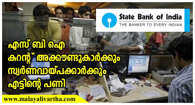 സ്റ്റേറ്റ് ബാങ് ഓഫ് ഇന്ത്യയുടെ കറന്റ് അക്കൗണ്ടുകാര്ക്കും സ്വര്ണവായ്പക്കാര്ക്കും എട്ടിന്റെ പണി വരുന്നു. ഒരു ദിവസം 25,000 രൂപയില് കൂടുതല് നിക്ഷേപിക്കുന്ന കറന്റ് അക്കൗണ്ട് ഉടമകള് കൂടുതല്വരുന്ന ഓരോ 1000 രൂപയ്ക്കും 75 പൈസ സേവനനികുതി നല്കണമെന്നാണ് പുതിയ നിബന്ധന.