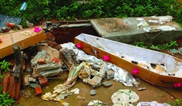 ഒന്നര മാസം മുമ്പു പള്ളിസെമിത്തേരിയില് അടക്കം ചെയ്ത വയോധികയുടെ മൃതദേഹാവശിഷ്ടങ്ങള് മകന് ചാക്കിലാക്കി വീട്ടിലേക്കു കൊണ്ടുപോയി. കല്ലറ തകര്ത്തിരിക്കുന്നതു കണ്ട് അന്വേഷിച്ചെത്തിയ പോലീസിനോട് മകന്റെ മറുപടി ഇതായിരുന്നു 'അമ്മ മരിച്ചിട്ടില്ല, പറമ്പിലുണ്ട്.