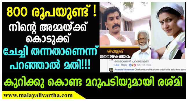 ഫേസ്ബുക് ചിത്രത്തിന് ഞരമ്പ് സംഘിയുടെ അശ്ലീല കമന്റ്; കടുത്ത ഭാഷയില് മറുപടിയുമായി രശ്മി