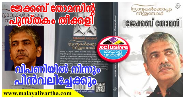 ജേക്കബ് തോമസിന്റ പുസ്തകം തീക്കളി; വിപണിയില് നിന്നും പിന്വലിച്ചേക്കും