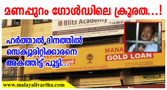 ഹര്ത്താല് ദിനങ്ങളില് സാധാരണ വ്യാപാര സ്ഥാപനങ്ങള് അടക്കമുള്ളവയൊന്നും തുറക്കുക പതിവില്ല. കേരളത്തില് ഹര്ത്താല് ദിനമെന്നാല് അവധി ദിവസമാണ്. എന്നാല് പല സ്ഥാപനങ്ങളുടേയും സെക്യൂരിറ്റി ജീവനക്കാര്ക്ക് ഇത് ബാധകമാവില്ല. പ്രത്യേകിച്ച് ധനകാര്യസ്ഥാപനങ്ങളുടെ സെക്യൂരിറ്റിക്കാര്ക്ക്. മനുഷ്യനേക്കാളും വില ഇന്ന് പണത്തിന് ഉണ്ടെങ്കിലും കൊച്ചി മണപ്പുറം ഗോള്ഡില് നടന്ന ക്രൂരത ന്യായീകരിക്കാന് സാധിക്കാത്തതാണ്.