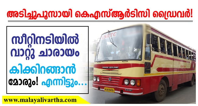 കെഎസ്ആര്ടിസി ബസ് ഡ്രൈവിംഗ് സീറ്റിനടിയില് വാറ്റു ചാരായവും മോരും; മദ്യപിച്ച് ടെംപോ വാനിലിടിച്ച് അപകടം