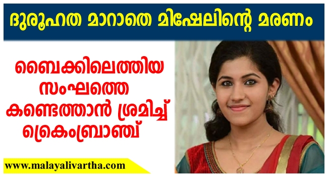 ബൈക്കിലെത്തിയ സംഘത്തെ കണ്ടെത്താന് ശ്രമം; മിഷേലിന്റെ മരണത്തിലെ ദുരൂഹത നീക്കാന് ക്രൈംബ്രാഞ്ച്