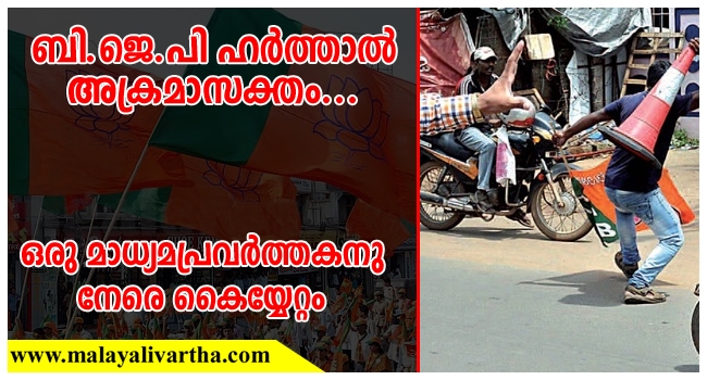 ബി.ജെ.പി ഹര്ത്താല് അക്രമാസക്തം...ബി.ജെ.പി. നടത്തിയ പ്രകടനത്തിനിടെ ഫ്ളെക്സുകള് തകര്ത്തത് ചിത്രീകരിച്ച ക്യാമറാമാന് നേരെ കൈയ്യേറ്റം