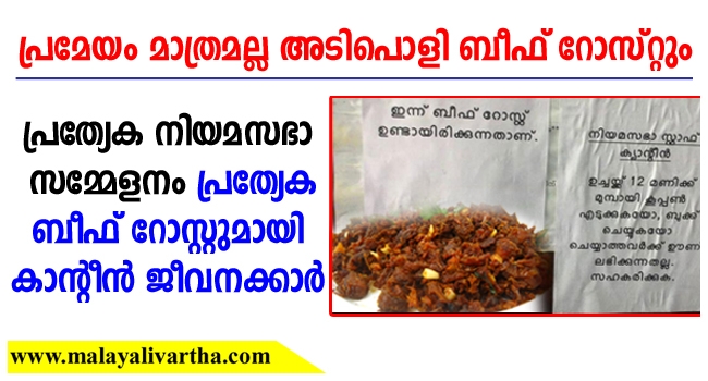 പ്രത്യേക നിയമസഭാ സമ്മേളനം: പ്രത്യേക ബീഫ് റോസ്റ്റുമായി കാന്റീന് ജീവനക്കാര്