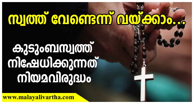 പുരോഹികതര്ക്കും സന്യസ്തര്ക്കും കുടുംബസ്വത്തില് അവകാശമുണ്ടെന്ന് കേരള ഹൈക്കോടതി