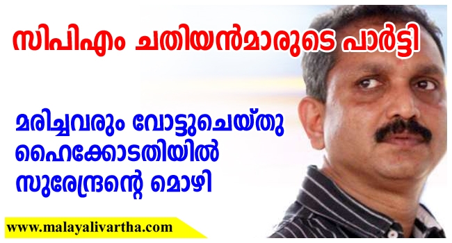മഞ്ചേശ്വരത്ത് മരിച്ചവരും വോട്ടുചെയ്തെന്ന് ഹൈക്കോടതിയില് മൊഴി; സുരേന്ദ്രന്റെ സാധ്യതകള് തെളിയുന്നുവോ? കളളവോട്ട് നടന്നെന്നതിന് കൂടുതല് തെളിവുകള്