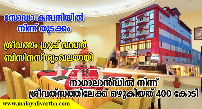 ഹവാല ബിനാമി ഇടപാടുകളിലൂടെ ശ്രീവത്സം ഗ്രൂപ്പ് ചെയര്മാന് എം.കെ. രാജേന്ദ്രന് പിള്ള 400 കോടി രൂപയുടെ അനധികൃത സ്വത്ത് സമ്പാദിച്ചിട്ടുണ്ടെന്ന് ആദായനികുതി വകുപ്പ് കണ്ടെത്തിയിരിക്കുകയാണ്. നാഗാലാന്ഡ് പൊലീസില് അഡിഷണല് എസ്.പിയായി വിരമിച്ചെങ്കിലും ഉപദേശകനായി തുടരുന്ന ഇയാള്ക്കെതിരെ എന്ഫോഴ്മെന്റ് ഡയറക്റേറ്റും അന്വേഷണം തുടങ്ങി.