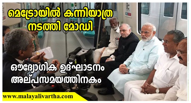 കൊച്ചി മെട്രോയില് കന്നി യാത്ര നടത്തി പ്രധാനമന്ത്രി നരേന്ദ്രമോഡി