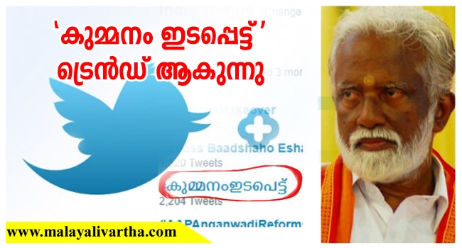'കുമ്മനം ഇടപ്പെട്ട്' ഹാഷ് ടാഗ് ട്വിറ്റെറില് ട്രെന്ഡ് ആകുന്നു