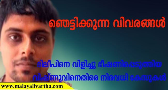 ഞെട്ടിക്കുന്ന വിവരങ്ങള്; ദിലീപിനെ വിളിച്ചു ഭീഷണിപ്പെടുത്തിയ വിഷ്ണുവിനെതിരെയുള്ള കേസുകള് പുറത്ത്