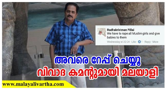 മുസ്ലിം പെണ്കുട്ടികളെ ബലാത്സംഗം ചെയ്ത് അവര്ക്ക് കുട്ടികളെ കൊടുക്കണം;മലയാളിയുടെ കമന്റ് വിവാദമാകുന്നു