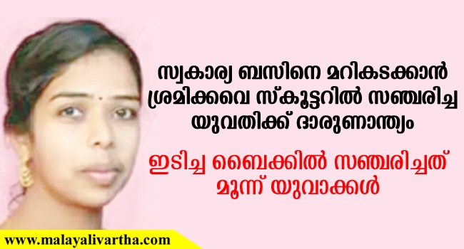 ഭർത്താവിനൊപ്പം സ്കൂട്ടറിൽ സഞ്ചരിച്ച യുവതിക്ക് ദാരുണാന്ത്യം