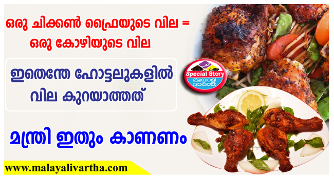 കോഴിയുടെ വില കുറയ്ക്കണമെന്ന് നിര്ബന്ധിക്കുന്നവര് ഹോട്ടലുകളിലെ വില കൂടി അറിയുക