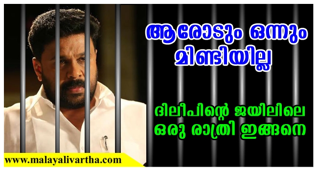 സിനിമക്കായി പലതവണ ജയിലില് കയറിയ ദിലീപ് ഇന്നലെ ജീവിതത്തില് ശരിക്കും ജയിലില് കിടന്നു. ദിലീപ് അടുത്തിടെ അഭിനയിച്ച വെല്ക്കം ടു സെന്ട്രല് ജയില് എന്ന സിനിമയില് കോമഡിയുടെ വെടിക്കെട്ട് തീര്ത്ത റോളിലായിരുന്നു അദ്ദേഹം എന്നാല് ജയിലില് ഇന്നലെ കാര്യങ്ങള് അത്ര ഹാപ്പിയായിരുന്നില്ല. മൊത്തത്തില് നിസ്സംഗ ഭാവത്തിലായിരുന്നു ദിലീപ് ഇന്നലെ.