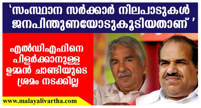 സിപിഐഎമ്മും സിപിഐയും തമ്മില് നല്ല ബന്ധമാണ്; എല്ഡിഎഫില് വിള്ളല് ഉണ്ടാക്കാനുള്ള ഉമ്മന് ചാണ്ടിയുടെ ശ്രമം നടക്കില്ല