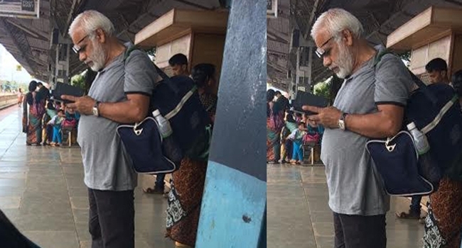 അതാണ് 'മോദി വടകര സ്റ്റേഷനില്' എന്ന പേരില് വൈറലാകുന്നത്. പാന്റ്സും ടീഷര്ട്ടും ഒരു നീല സൈഡ് ബാഗുമായി മൊബൈല് ഫോണ് നോക്കി നില്ക്കുന്ന രൂപത്തിലാണ് പേരറിയാത്ത ഡ്യൂപ്പ് മോദിയുടെ നില്പ്പ്. എങ്ങോട്ടേക്കോ ഉള്ള യാത്രയ്ക്കായി ട്രെയിന് കാത്ത് നില്ക്കുകയാണ് ഇയാളെന്ന് ഉറപ്പ്. സൈഡ് ആംഗിളില് നിന്ന് ആരോ മൊബൈലില് പകര്ത്തിയ ചിത്രത്തിലെ ആളെ കണ്ടാല് ആരും ഒറ്റ നോട്ടത്തില് അത് നരേന്ദ്ര മോദിയല്ലെന്ന് പറയില്ല.