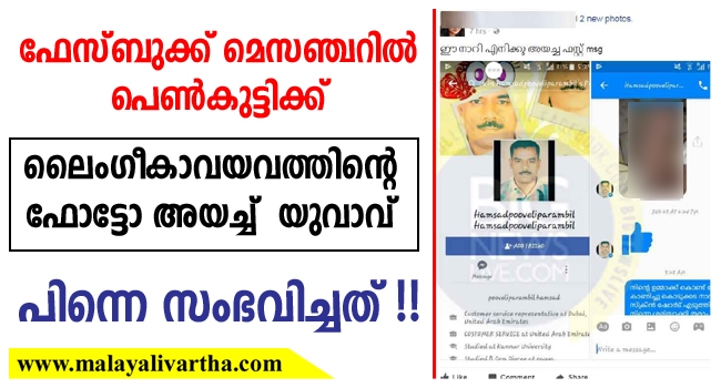 ഫേസ്ബുക്ക് മെസഞ്ചറില് അശ്ലീല ചിത്രമയച്ച യുവാവിന് എട്ടിന്റെ പണികൊടുത്ത് പെൺകുട്ടി