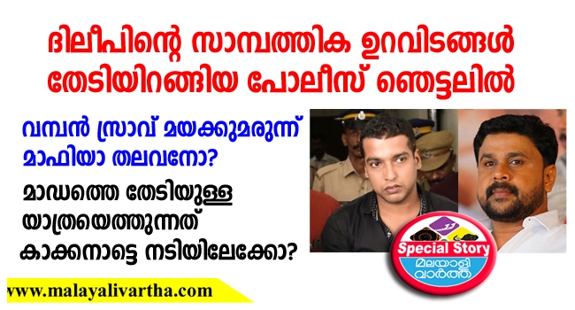 പൾസർ സുനിയുമായി ദിലീപിന്റെ ബന്ധങ്ങളും ദിലീപിന്റെ സാമ്പത്തിക ഉറവിടങ്ങളും തേടിയിറങ്ങിയ പോലീസ് ഞെട്ടലിൽ. പൾസർ സുനിയുമായുള്ള യാത്രയും അന്വേഷണവും പുരോഗമിക്കുമ്പോൾ ഒടുവിൽ ചെന്നെത്തിയത് കാക്കനാട്ടേ നടിയിലേക്കും, കൊച്ചിയിലേ മയക്കുമരുന്ന് മാഫിയയിലേക്കും. ക്വട്ടേഷനും, കൊലക്കും, യാതൊരു മടിയുമില്ലാത്ത കൊച്ചിയിലേ മയക്കുമരുന്ന് മാഫിയയേ തൊടാൻ അന്വേഷണം നയിക്കുന്നവർക്കും മടി. പോലീസിനും ജീവനും കുടുംബവും തന്നെയാണ് വലുത് എന്ന തരത്തിലും റിപ്പോർട്ടുകൾ പുറത്തുവരുന്നു.