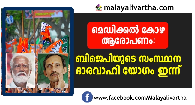 മെഡിക്കല് കോഴവിവാദം; ബിജെപി സംസ്ഥാന ഭാരവാഹി യോഗം ഇന്ന്, വിജിലന്സ്, ബിജെപി നേതാക്കളുടെ മൊഴിയെടുക്കും , ആര്.എസ് വിനോദിനെ പുറത്താക്കി