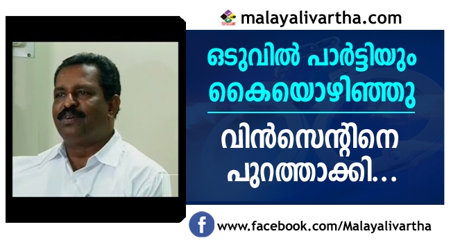 പീഡനക്കേസില് അകത്തായ വിന്സെന്റിനെ കോണ്ഗ്രസും കൈയൊഴിഞ്ഞു