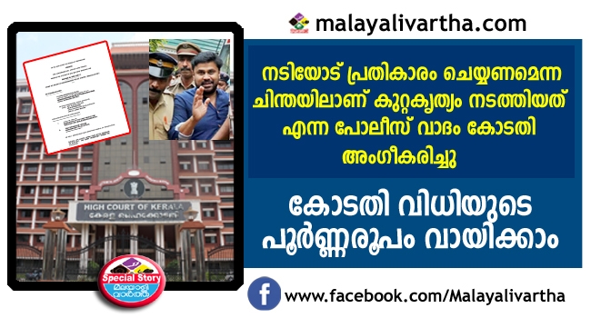 ദിലീപിന്റെ ജാമ്യ ഹര്ജി ഹൈക്കോടതി തള്ളുന്നത് തെളിവുകളും പ്രോസിക്യൂഷന് വാദങ്ങളും സസൂക്ഷ്മം വിശകലനം ചെയ്താണ്. ഗൂഢാലോചനയക്ക് ആധികാരികമായി പൊലീസ് ഉന്നയിക്കുന്ന വാദങ്ങള് കോടതിക്കും ബോധ്യപ്പെടുന്നു. ഇതുമായി ബന്ധപ്പെട്ട് ദിലീപിനായി ഉന്നയിച്ച വാദങ്ങളെല്ലാം കോടതി തള്ളി. വിധിയുടെ പൂര്ണ്ണ രൂപം ഇനി പറയുംവിധം...