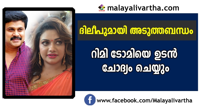 ചോദ്യംചെയ്യാന് തീരുമാനിച്ചതോടെ റിമി ടോമിയോട് വിദേശത്തേക്ക് പോകരുതെന്നും ഷോകള് റദ്ദാക്കണമെന്നും അന്വേഷണസംഘം നിര്ദേശിച്ചിട്ടുണ്ട്. അതേസമയം, ദിലീപിന്റെ മാനേജര് അപ്പുണി ഉടന് കോടതിയില് കീഴടങ്ങുമെന്നും സൂചനയുണ്ട്. ഇയാളെ ഉടന് കണ്ടെത്തണമെന്ന് ഹൈക്കോടതിയും ആവശ്യപ്പെട്ടിരുന്നു. ഇയാളെ ചോദ്യം ചെയ്താല് മാത്രമേ, കേസിലെ നിര്ണായകവിവരങ്ങള് പുറത്തുവരൂ.