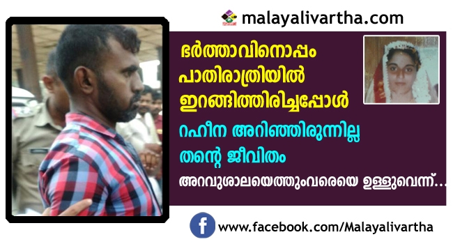 എത്ര പിണക്കങ്ങളുണ്ടെങ്കിലും സ്വന്തം ഭര്ത്തവ് വന്നുവിളിച്ചാല് ഏത് പാതിരാത്രിയിലും ഇറങ്ങിച്ചെല്ലണമെന്ന സാമൂഹ്യബോധം നയിച്ചത് ഒരു യുവതിയുടെ ദാരുണമായ അന്ത്യത്തിലേക്ക്. കഴിഞ്ഞ ദിവസം പരപ്പനങ്ങാടി അഞ്ചപ്പുരയിലെ അറവുശാലയില് വെച്ച് ഭര്ത്താവിന്റെ കൈകളാല് കഴുത്തറുത്ത് കൊലചെയ്യപ്പെട്ട റഹീനയെ രാത്രിയില് രണ്ടര മണിക്ക് വിളിച്ചിറക്കിക്കൊണ്ടുപോകുമ്പോള് സ്വന്തം മാതാവ് പലതവണ പോകേണ്ടെന്ന് ഓര്മ്മപ്പെടുത്തിയിട്ടും ഭര്ത്താവിലുള്ള വിശ്വാസവും സ്നേഹവും തന്നെയായിരുന്നു അവളെ മരണത്തിലേക്ക് ഇറങ്ങിപോവാന് പ്രേരിപ്പിച്ചത്.