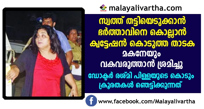 കണ്മുമ്പില് കാമുകന് മകനെ ഇടിച്ചു വീഴ്ത്തി, മകനേയും ഭര്ത്താവിനേയും വധിക്കാന് ക്വട്ടേഷന്; കൊല്ലത്തെ ലേഡി ഡോക്ടർ രശ്മി പിള്ളയെ കുറിച്ച് പുറത്തു വരുന്നത് ഞെട്ടിക്കുന്ന കാര്യങ്ങള്