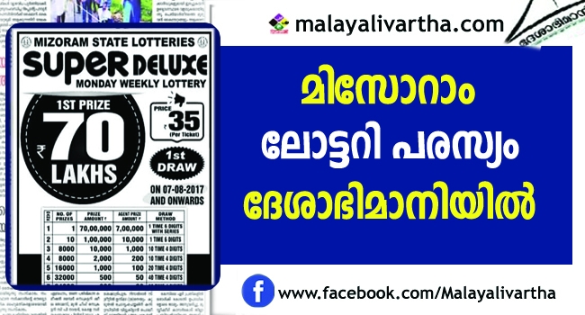 മിസോറാം ലോട്ടറിയുടെ പരസ്യം ദേശാഭിമാനിയിലും. മിസോറാം ലോട്ടറി നിയമവിരുദ്ധമാണെന്ന് ധനമന്ത്രി ഡോ. തോമസ് ഐസക്ക് അഭിപ്രായപ്പെടുമ്പോഴാണ്, സിപിഐഎം മുഖപത്രമായ ദേശാഭിമാനിയില് ലോട്ടറി സംബന്ധിച്ച പരസ്യം പ്രസിദ്ധീകരിച്ചത്. ഓഗസ്റ്റ് ഏഴുമുതല് നറുക്കെടുപ്പ് തുടങ്ങുമെന്ന് പരസ്യത്തില് വ്യക്തമാക്കിയിട്ടുണ്ട്.
