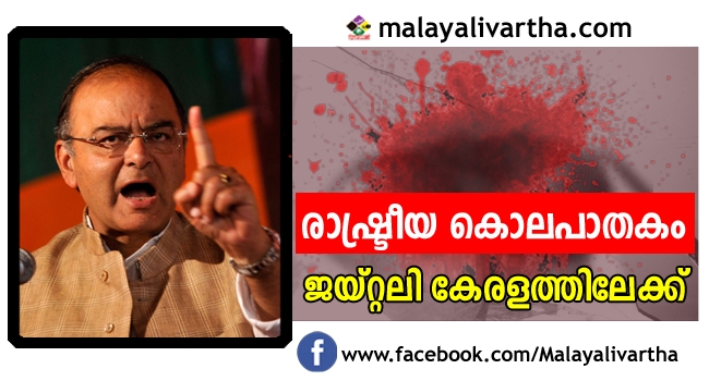 ആര്എസ്എസ് പ്രവര്ത്തകന്റെ കൊലപാതകം: ജയ്റ്റലി കേരളത്തിലേയ്ക്ക്
