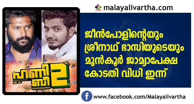 ഹണീബി സെക്കന്റിന്റെ ഷൂട്ടിംഗ് സെറ്റില് വെച്ച് ചിത്രത്തില് അഭിനയിക്കാനെത്തിയ നടിയോട് അശ്ലീല ചുവയോടെ സംസാരിച്ചതിനും ചിത്രത്തില് ബോഡി ഡബ്ലിംഗ് നടത്തിയതിനും സംവിധായകന് ജീന്പോള് നടന് ശ്രീനാഥ് ഭാസി എന്നിവരുള്പ്പടെ നാലു പേര്ക്ക് എതിരെ പൊലീസ് കേസ് എടുത്തതിനെ തുടര്ന്ന് ഇവര് സമര്പ്പിച്ച മുന്കൂര് ജാമ്യാപേക്ഷയില് കോടതി ഇന്ന് വിധി പറയും.